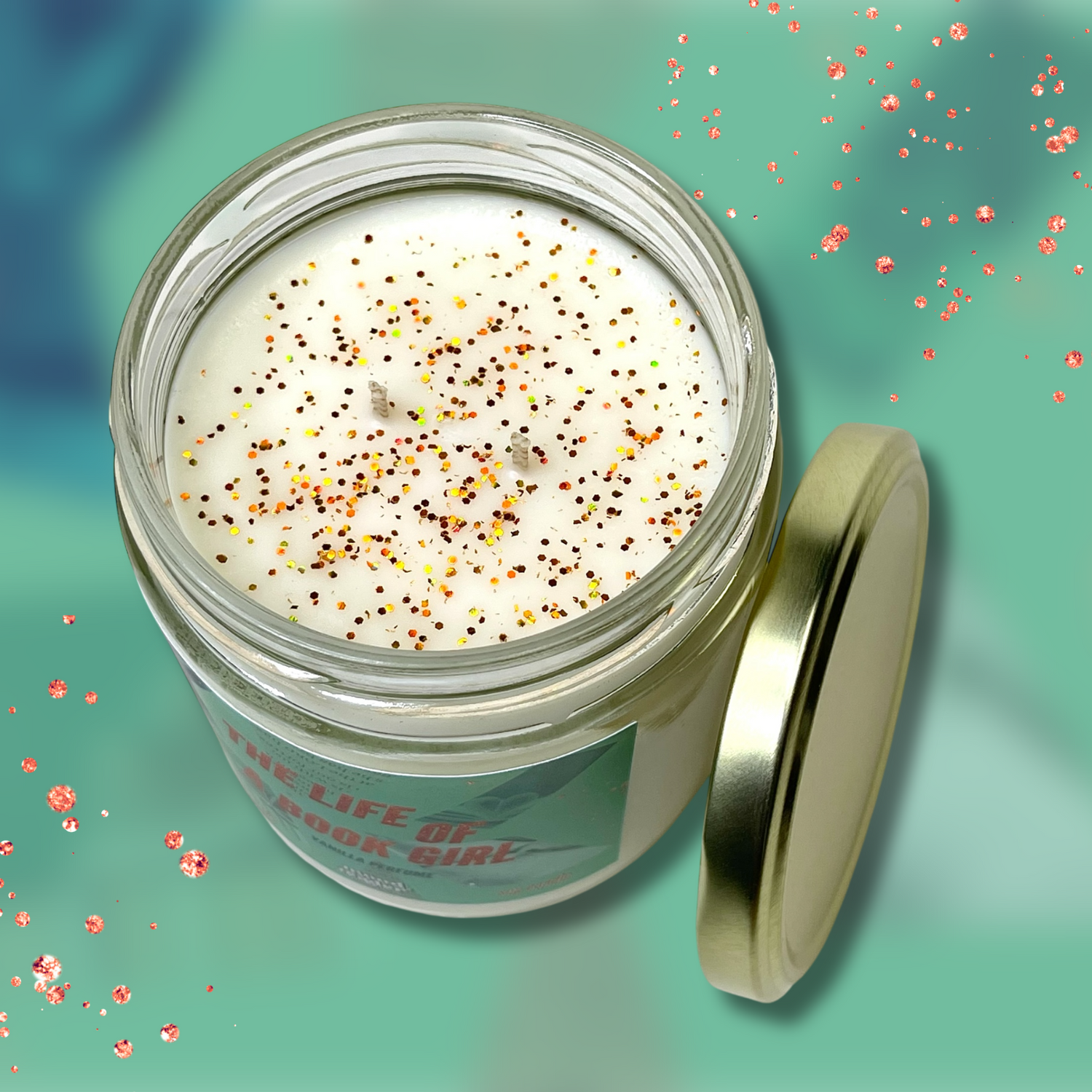Are you ready for your "Book Girl" era? We've got you. Get ready to open a book and listen to Taylor's new album with this double-wick candle that smells like vanilla perfume. Topped with orange holographic glitter for extra showgirl pizazz.